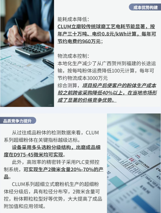福建項(xiàng)目通過不同類型設(shè)備的集群化配置(如CLUM立磨與HGM磨粉機(jī)的組合),實(shí)現(xiàn)了非金屬礦加工的"質(zhì)量兼顧、精準(zhǔn)分級(jí)",滿足多元化市場(chǎng)需求。該種集群化的生產(chǎn)線,在產(chǎn)能靈活性、產(chǎn)品適應(yīng)性和投資回報(bào)率上均具有明顯優(yōu)勢(shì),為行業(yè)設(shè)備配置提供了新的參考范式。